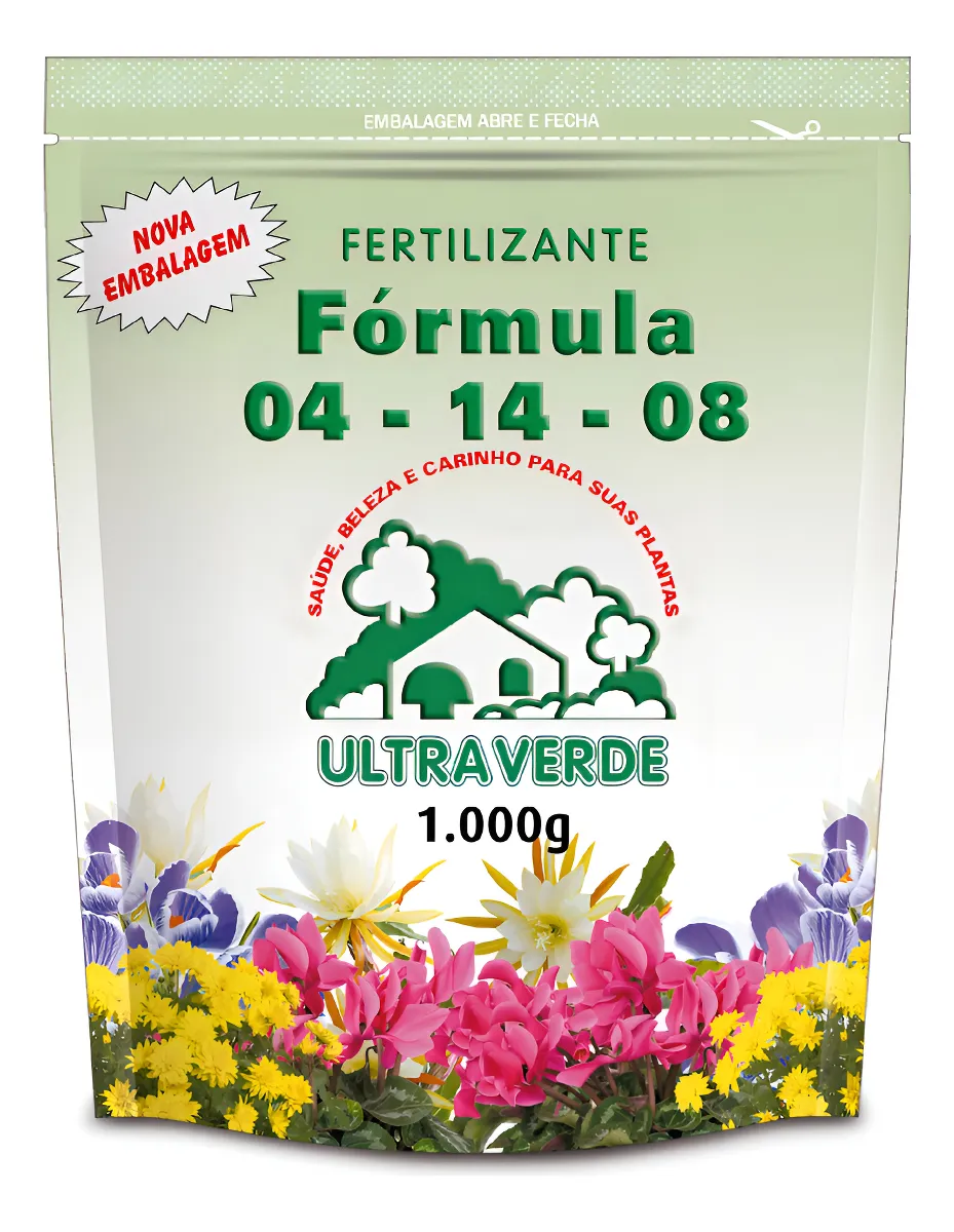 O Fertilizante 04.14.08 Ultraverde é recomendado para plantio, devido ao alto teor de fósforo, importante para o desenvolvimento do sistema radicular.